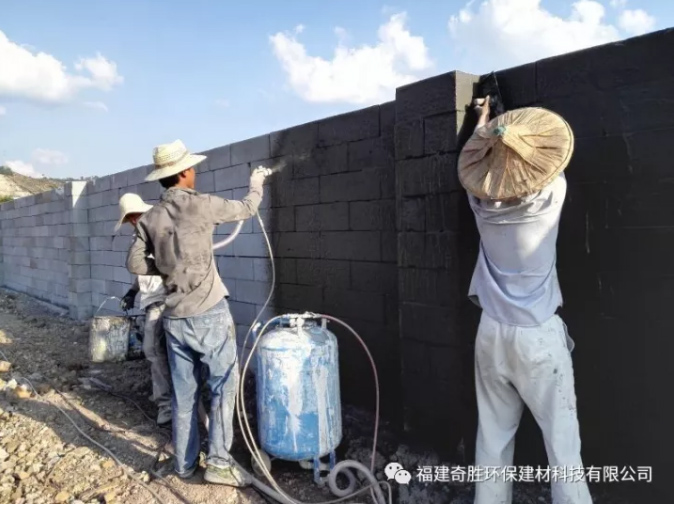 圖四:直接噴上巖安牌加氣磚專(zhuān)用砂漿